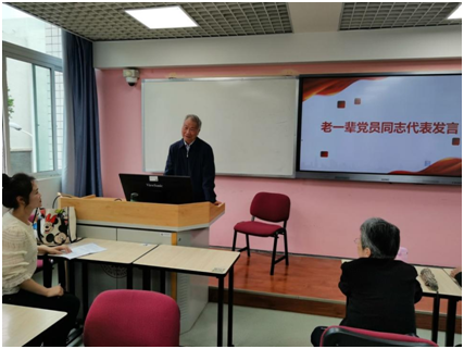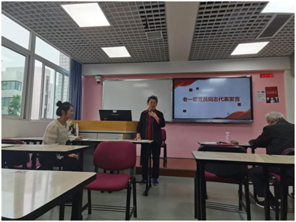 活动最后,支部书记唐禹致总结辞,勉励青年学生传承党性修养,学习老一辈党员同志艰苦奋斗,坚持不懈的精神,并邀请四位嘉宾老师与支部党员共同合影留念,以此谨记此刻两代人互励共勉的珍贵时光。