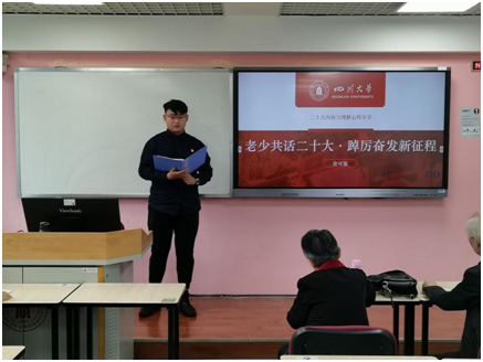 为深入学习贯彻党的二十大精神,加强党支部政治建设,2023年4月28日下午2点半,爱游戏ayx官网平台本科生第二党支部联合校(院)关工委素质拓展部在望江校区三教207联合开展“老少共话二十大,踔厉奋进新征程”主题党日活动。本次活动特邀校、院关工委素质部曹养书、秦自明、张一云三位老师以及学校机关党委青年教师骨干赴“一站式”学生社区兼职辅导员戢觅之、学院本科第二党支部全体党员共同学习党的二十大精神并分享学习体会。