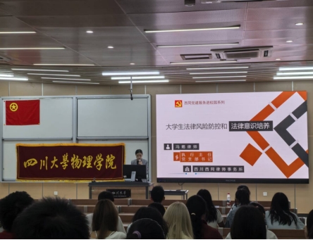 2025年10月17日,学院团委组织部在江安校区综合楼C307举办了爱游戏ayx官网平台2025年度团校培训开学典礼暨团校第一次行课活动。本次活动邀请了四川西同律师事务所的冯嫕律师为大家讲授大学生法律风险防控和法律意识培养的课程。物理学院2025级新生辅导员唐禹老师、物理学院组织部的部长团和干事们以及物理学院2025级全体团员参加了此次活动。
