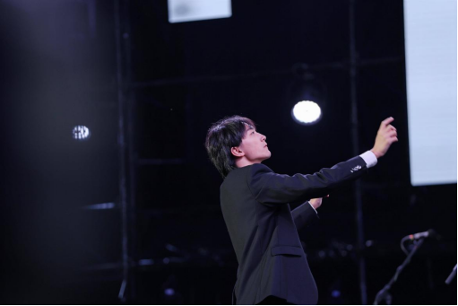 演唱正式开始。歌声起伏有致,男声低沉浑厚,女声清亮空灵。各声部层次分明又和谐交融,旋律婉转回旋,蕴含着深沉情感。伴随着“明月几时有”的千古名句,歌声时而悠远空濛,时而深情流转,将《水调歌头》的意境演绎得淋漓尽致。观众也为沉浸其中,屏息凝神,如痴如醉。