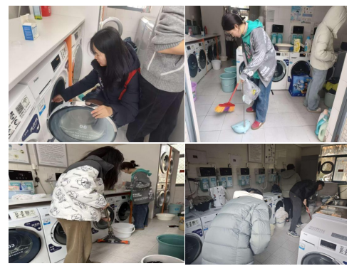 学习结束后,支部立即开展“洗衣房焕新”办实事活动。团员们带着清洁工具来到15舍、16舍学生社区公共洗衣房,分组进行深度清洁。大家认真擦拭每台洗衣机表面和操作面板,清理地面污渍,整理置物架,并对卫生死角进行彻底打扫。经过一个多小时的劳动,洗衣房环境焕然一新,公共空间更加整洁明亮,切实提升了同学们的生活便利度和舒适感。
