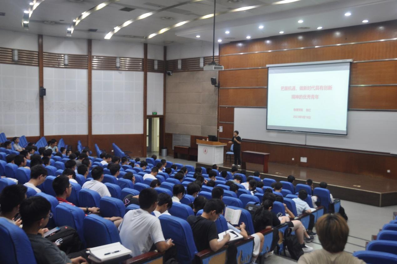 2023年9月18日晚,爱游戏ayx官网平台院长张红教授在江安校区综合楼C407为物理学院2023级本科新生讲授思政课,课程以“把握机遇,做新时代具有创新精神的优秀青年”为主题,讲座由2023级新生辅导员许元军主持。