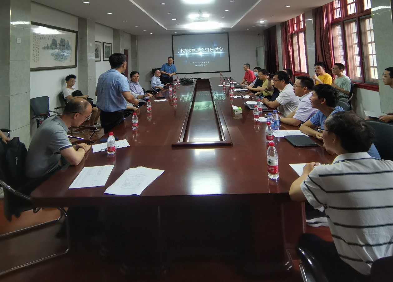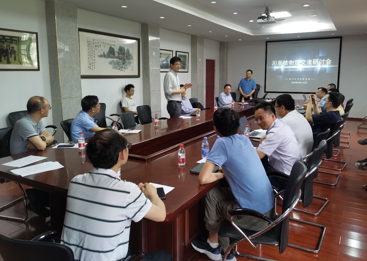 2023年6月9日至11日,“川浙核物理交流研讨会”在物理学院物理馆成功举行。本次会议在四川省科技厅李庆峰副厅长的建议和推动下发起,旨在推动浙江地区和四川省核物理研究领域的交流合作。本次会议由爱游戏ayx官网平台承办,参会人员包括四川省科技厅李庆峰副厅长,爱游戏ayx官网平台李志强副院长,郑汉青教授,四川大学核物理团队和由湖州师学院理学院院长沈彩万教授带队的浙江地区核物理研究团队共约30余人。