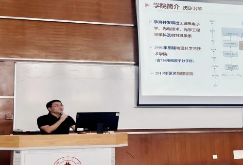 9月4日,物理学院院长吴家刚在江安校区C座407为2025级本科新生作了题为《格物致知、川韵新声》——学院学术前沿报告,系统介绍了学院的发展历程、人才培养成果及科研开展情况等。