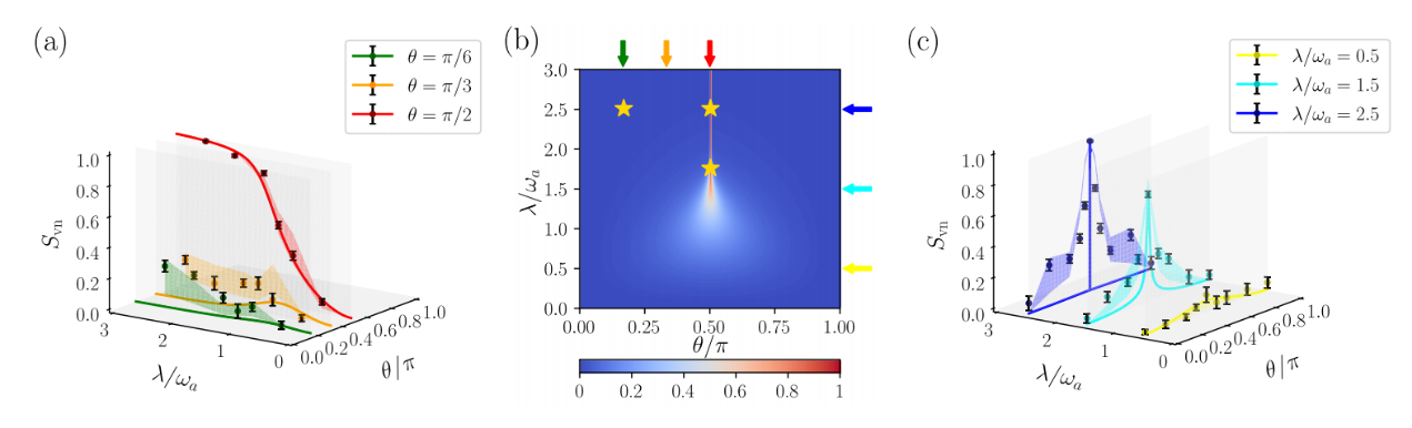 图1. 自旋的冯·诺依曼熵随着对称性控制参数以及耦合强度的变化关系
