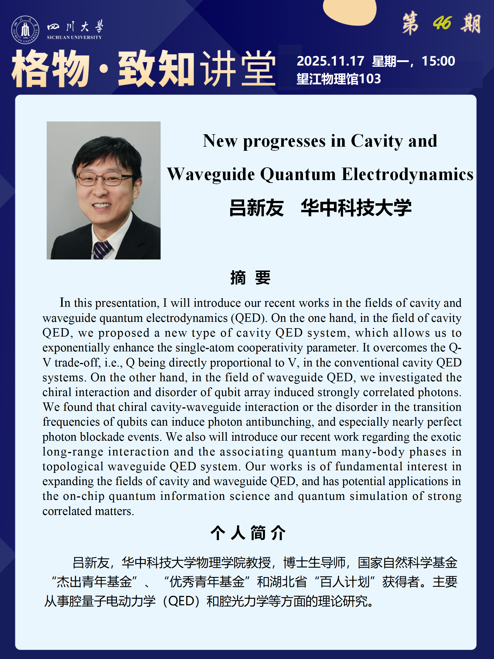 【学术报告】格物·致知讲堂第四十六期(2025年11月17日)