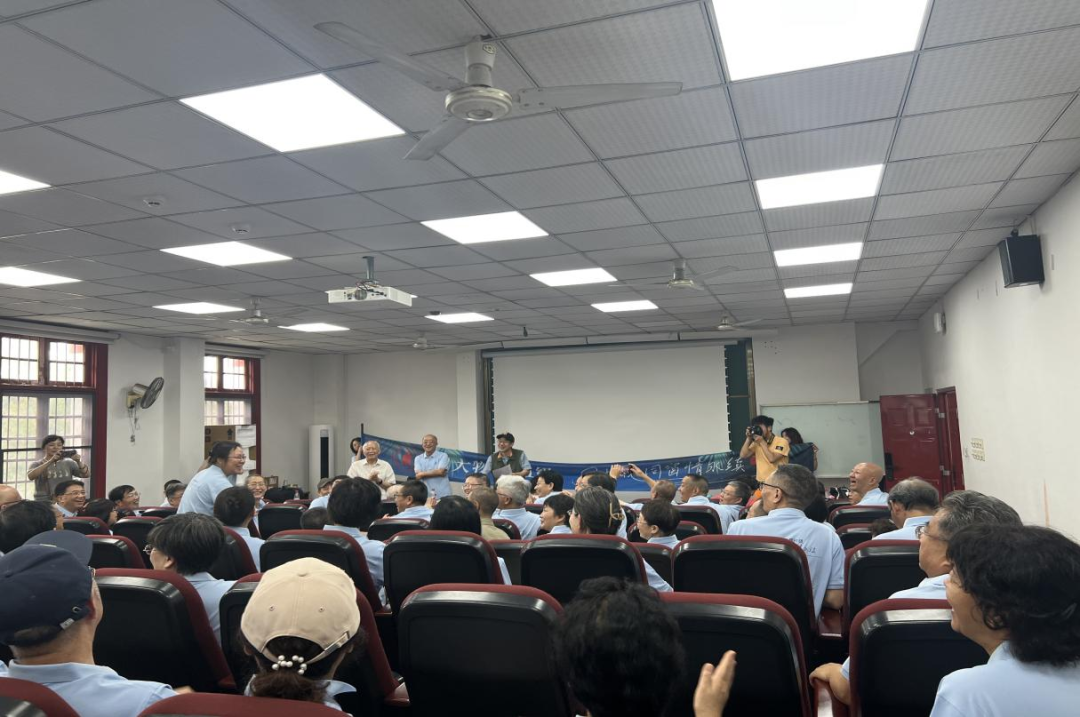 上午10点,校友们来到物理馆三楼阶梯教室,物理学院党委书记严成辉,物理学院党委副书记兼纪委书记陈笃海,时任物理系教师杜定旭、缪钟英、杨大军,物理学院原副院长伍登学,物理学院院长助理马瑶,物理学院研究生工作科科长纪智宏参加了此次活动。