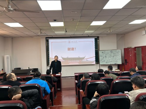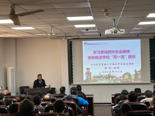 张诚以“学习贯彻四中全会精神,加快推进学校‘双一流’建设”为题,从“全会的重要意义、全会的主要精神、全会精神的学习贯彻”三个方面,全面系统地宣讲了党的二十届四中全会精神。他还紧密联系学校“十四五”取得的新成就和学院实际,着重宣讲了全会对全面加强党的领导、持之以恒全面从严治党作出的新部署,对“加快高水平科技自立自强”、“一体推进教育科技人才发展”、“繁荣发展社会主义文化” 、“办好人民满意的教育”以及深入推进“双一流”高校建设等提出的系列新要求进行解读,并强调,要深入学习贯彻落实好全会精神,系统谋划推进校院“十五五”智能化转型、特色化塑造、国际化提升,教育科技人才一体发展,为加快学校和学院的“双一流”建设步伐,做出我们应有的贡献。张诚生动激情的宣讲赢得了与会同志们的热烈掌声。