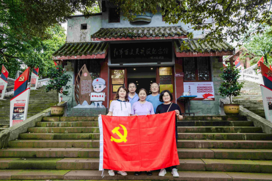 在参观完茶文化博物馆后,老师们前往红军百丈关战役纪念馆。在纪念馆内,大家通过观看图片、文物和史料,了解了红军长征的艰苦历程和革命先烈的英勇事迹。在纪念馆讲解员的引导下老师们深入了解了红军长征的历史背景、目的和意义,以及红军在长征途中展现出的坚定信念和顽强意志。临别时,在支部书记的带领导下,党员同志们面向党旗和入党誓词再次进行了庄严的宣誓,最后,所有老师进行合影留念。此次参观红军百丈关战役纪念馆,让大家深受感动和启发,纷纷表示要发扬传承红色基因,为学校和学院的发展贡献自己的力量。