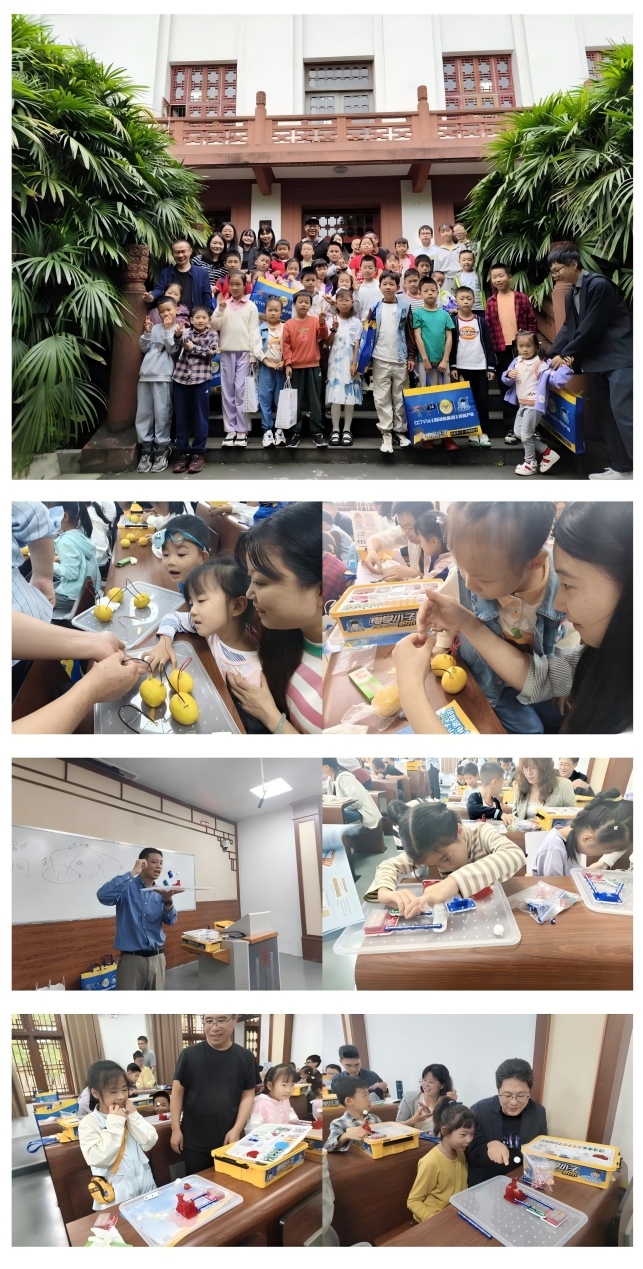 本期“神奇的电路”主题活动中,林方副教授以趣味十足的水果电路实验开篇,生动讲解电路基础知识点。活动现场提供积木式实验器材,引导孩子们亲手设计并搭建串联、并联电路。当孩子们成功让小电器运转起来时,探索的乐趣被瞬间点燃,强烈激发了他们的科学求知欲。